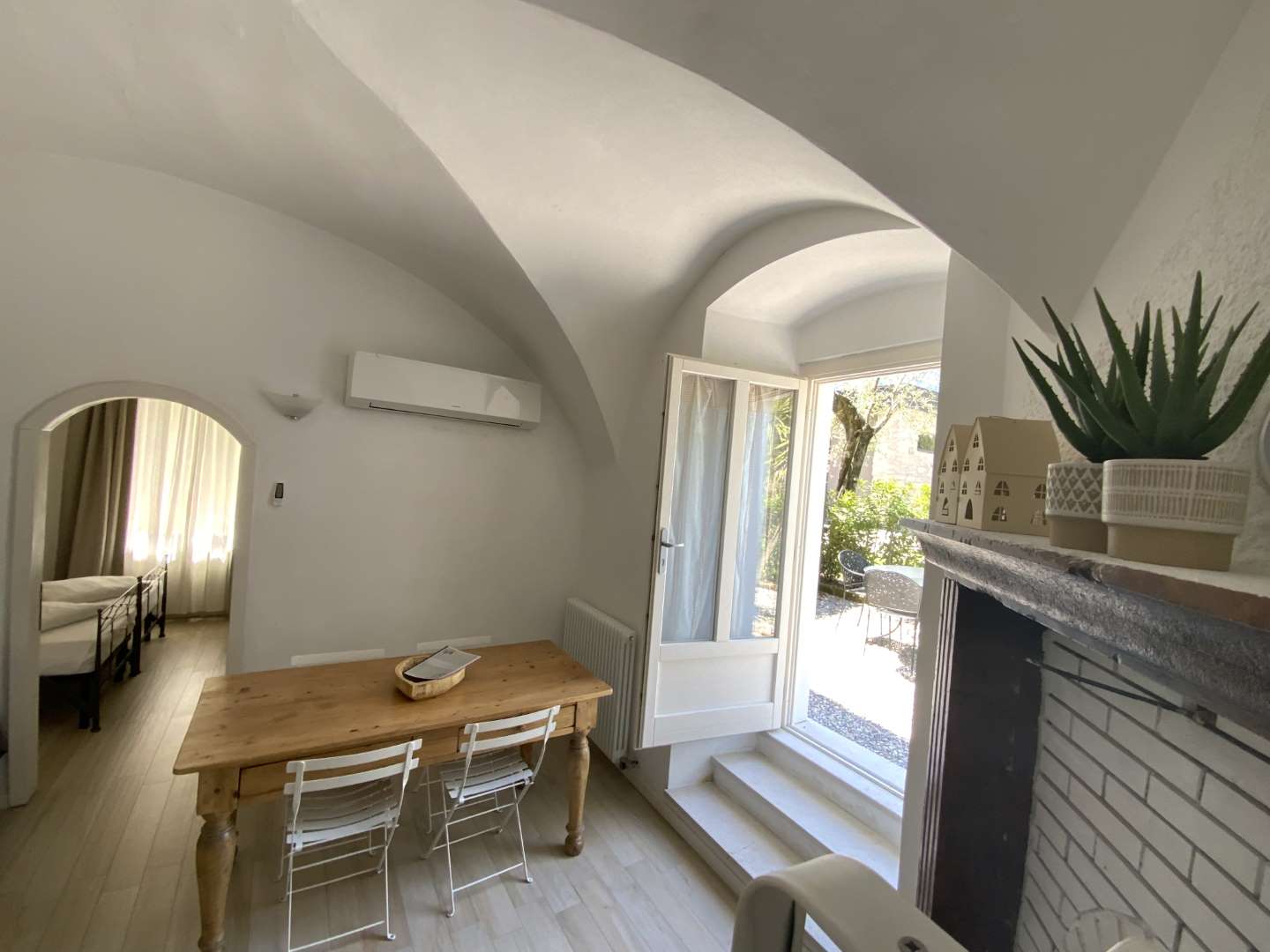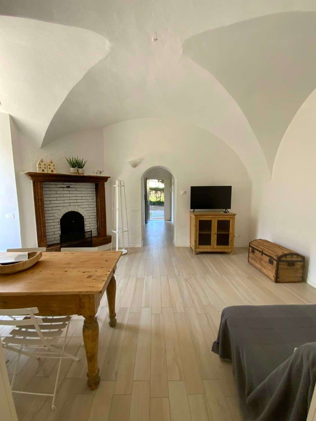 I caratteristici soffitti con gli avvolti a botte, il caminetto e i dettagli dell’arredo ne fanno un piccolo e fresco angolo di paradiso che rimarrà nei vostri cuori.